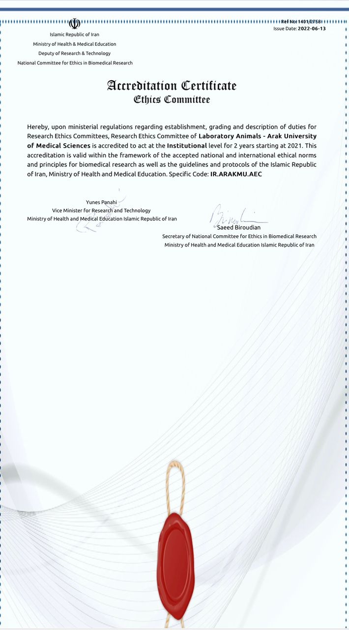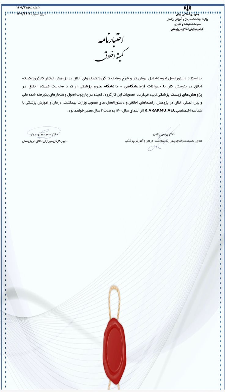 اخذ اعتبار نامه کمیته اخلاق در پژوهش کار با حیوانات آزمایشگاهی برای دانشگاه علوم پزشکی اراک ۰۱ تیر ۱۴۰۱ | ۰۷:۲۲ کد : ۲۷۲۴۶ اطلاعیه ارسال به دیگران نام شما ایمیل شما ایمیل دریافتکننده ارسال انصراف تعداد بازدید:۱۷۷۹۵