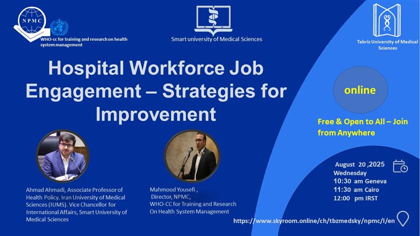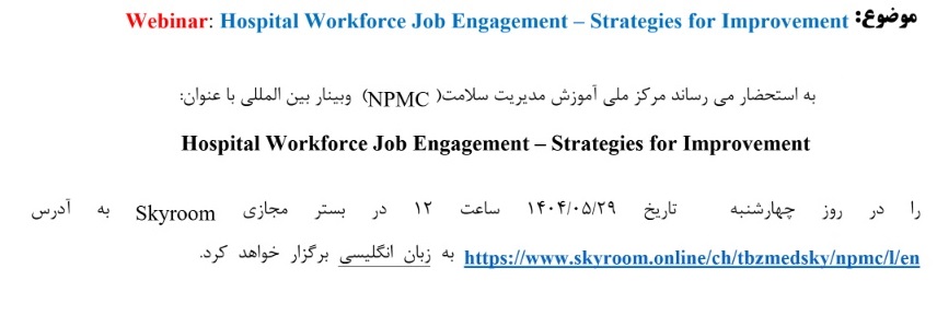 وبینار آموزشی بین المللی Hospital Workforce Job Engagement – Strategies for Improvement ۲۹ مرداد ۱۴۰۴ | ۱۰:۰۱ کد : ۵۳۹۲۵ اطلاعیه ارسال به دیگران نام شما ایمیل شما ایمیل دریافتکننده ارسال انصراف تعداد بازدید:۱۸۳۳ وبینار آموزشی بین المللی Hospital Workforce Job Engagement – Strategies for Improvement